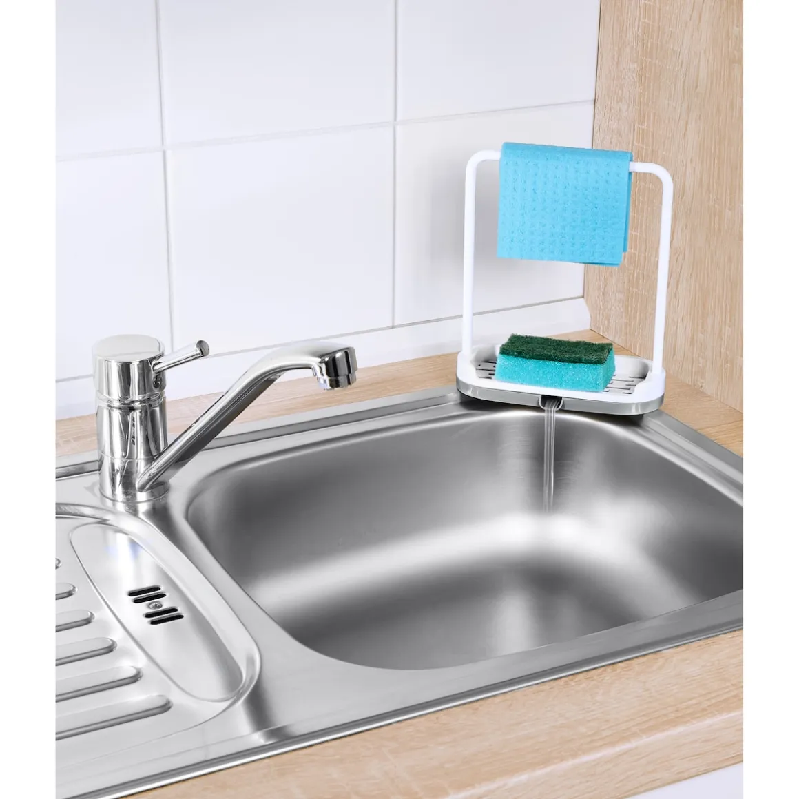 Dieser praktische Küchenhelfer verwahrt Ihre Spülutensilien hygienisch und immer griffbereit. An dem Halter kann das Spültuch optimal trocknen, das tropfende Wasser von Schwamm und Bürste fängt die Auffangschale auf. Anschließend läuft das Wasser einfach ins Spülbecken ab.
