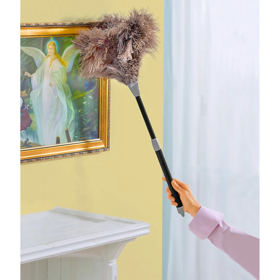Straußenfedern ziehen jedes Staubkorn magisch an. So herrscht bald überall staubfreie Sauberkeit. Der Stiel ist ausziehbar. Straußenfedern-Staubwedel: für staubfreie Regale, Vitrinen, Kunstwerke und Kristall-Leuchter!