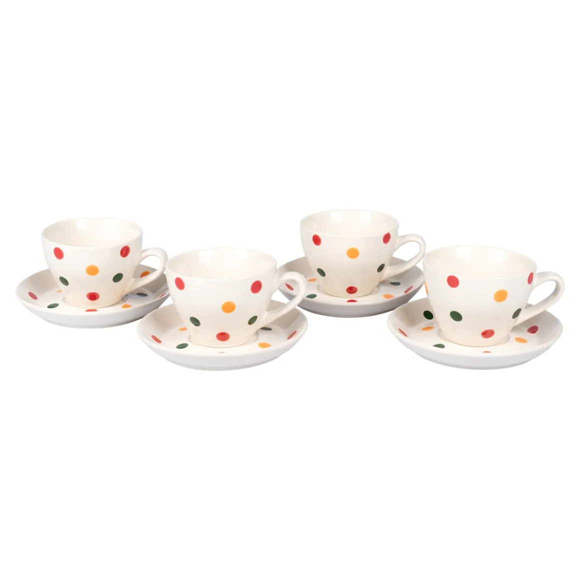 Dieses fröhliche Tassen-Set zaubert Ihnen und Ihren Gästen garantiert ein Lächeln ins Gesicht. Ob zum Frühstück oder Nachmittagskaffee – verwandeln Sie jede Mahlzeit in ein kunterbuntes Schlemmervergnügen! Das Set enthält 4 Tassen und 4 Unterassen, die durch ihr farbenfrohes Design jede Tischdeko aufpeppen und für gute Laune sorgen.