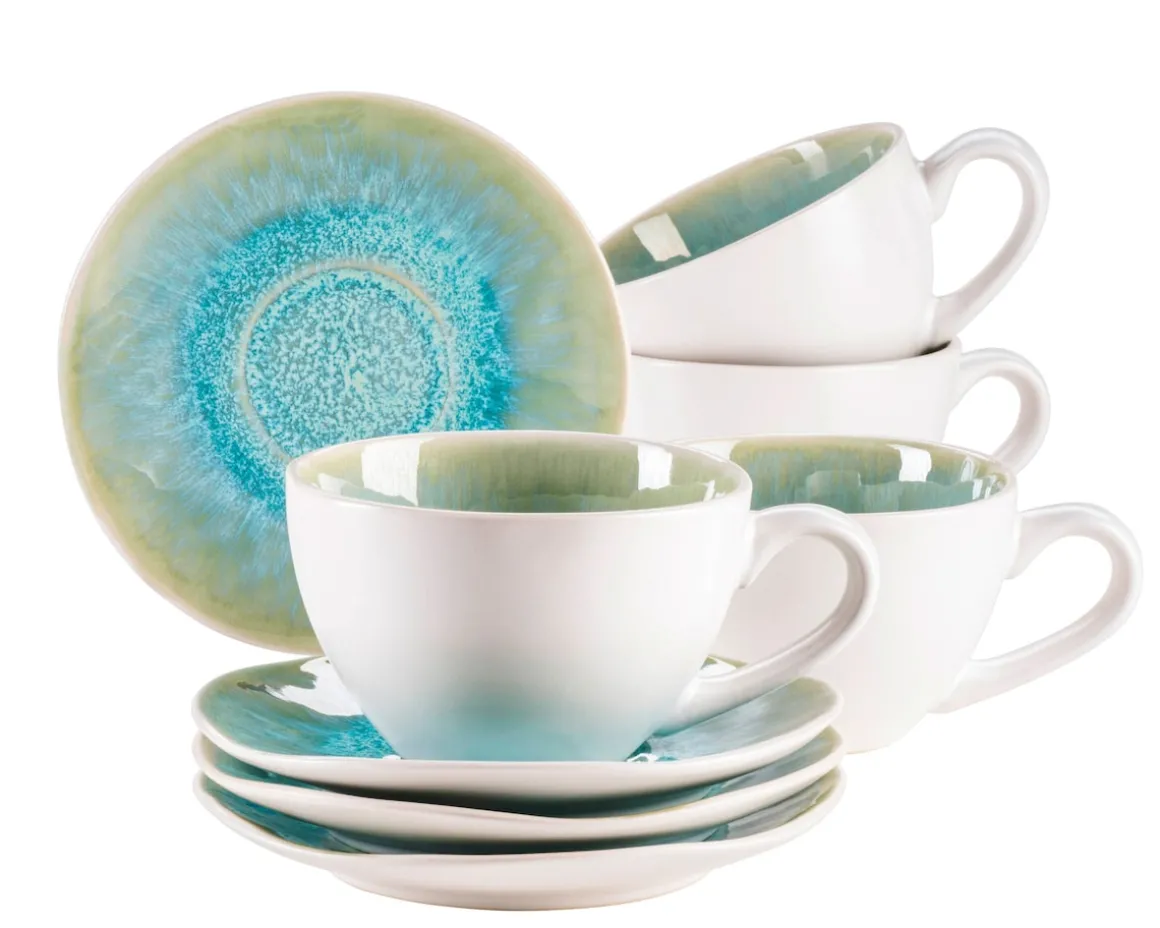4x Kaffeetasse bzw. Teetasse (270 ml, Ø 10 cm) und 4x Untertasse (Ø 14,5 cm)