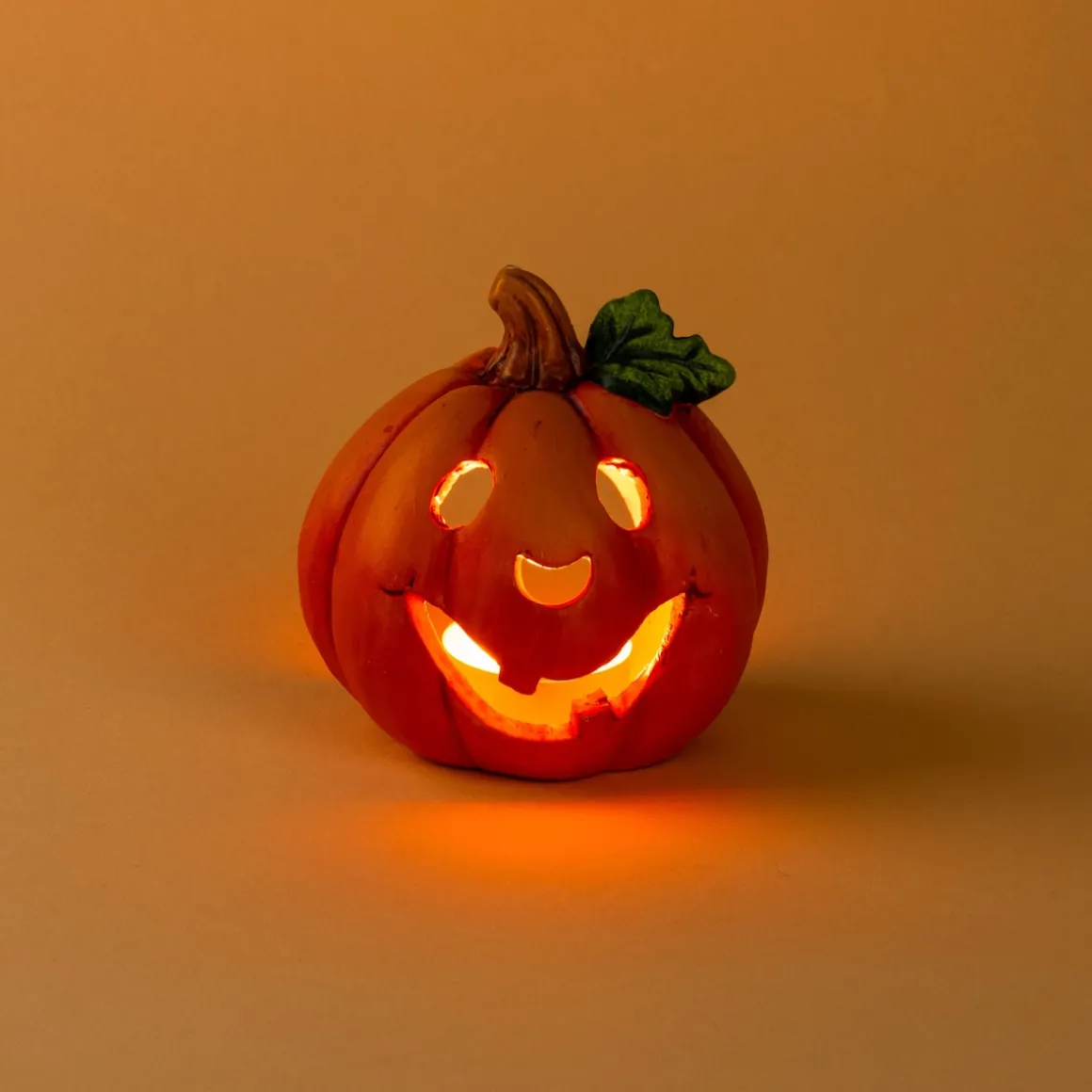 Dieser gemütliche Teelichthalter in Form eines Kürbisgeistes entfachen in jedem Herzen ein Freudenfeuer! Er weiß genau, wie er Sie um den Finger wickeln kann: Einfach ein Teelicht einstellen – schon versprüht er seinen schaurigen Charme. Ideal für Halloween oder gemütliche Herbstabende, schafft er eine warme, einladende Atmosphäre in Ihrem Zuhause. Lassen Sie sich von seinem Charme verzaubern und genießen Sie die stimmungsvollen Lichtakzente!