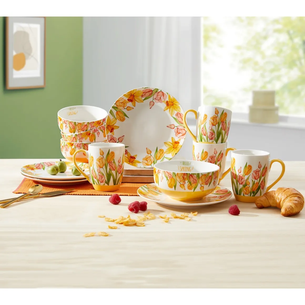 Tulpengrüße wie aus Amsterdam! Das farbenfrohe Blütenmotiv bringt frische Eleganz in Ihr Geschirrset und sorgt für gute Laune beim Essen. Ideal für Frühstück, Mittagessen oder Kaffee und Kuchen – ein Hingucker für jede Gelegenheit!