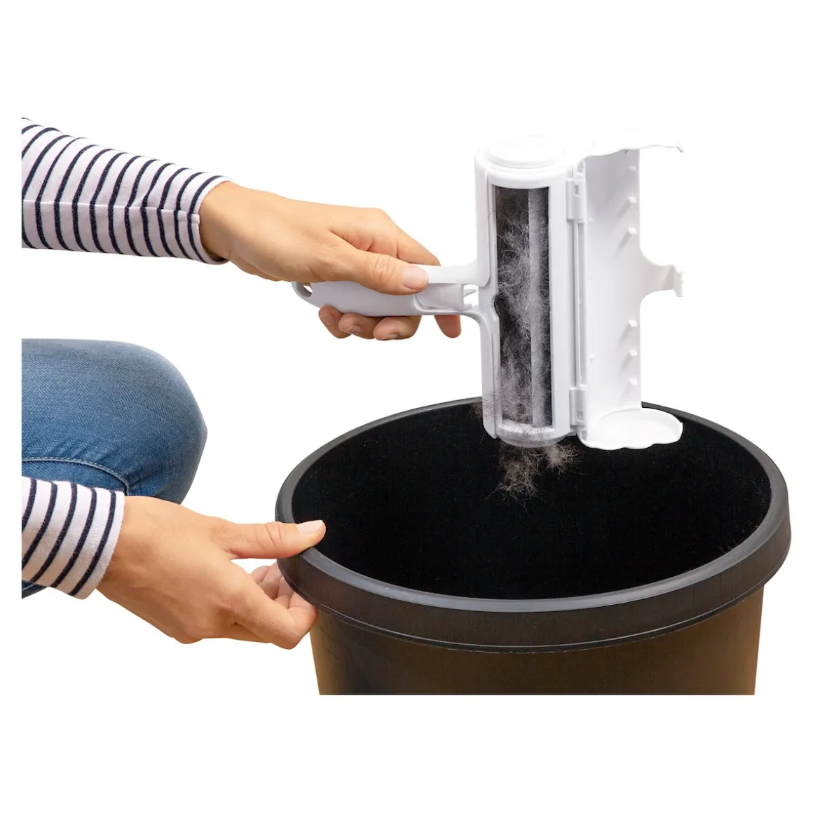Ob Kleidung, Decke, Sofa, Teppich etc.: Diese handliche Reinigungsrolle macht Schluss mit haarigen Angelegenheiten – im Handumdrehen! Einfach den Tierhaarentferner über die betreffende Stelle rollen, schon werden sämtliche Tierhaare oder Flusen sauber entfernt und landen automatisch im Sammelbehälter. Zum Entleeren einfach Deckel öffnen und die Haare in einen Abfallbehälter kippen. Umweltfreundlich, da dauerhaft wiederverwendbar – ohne Klebestreifen.