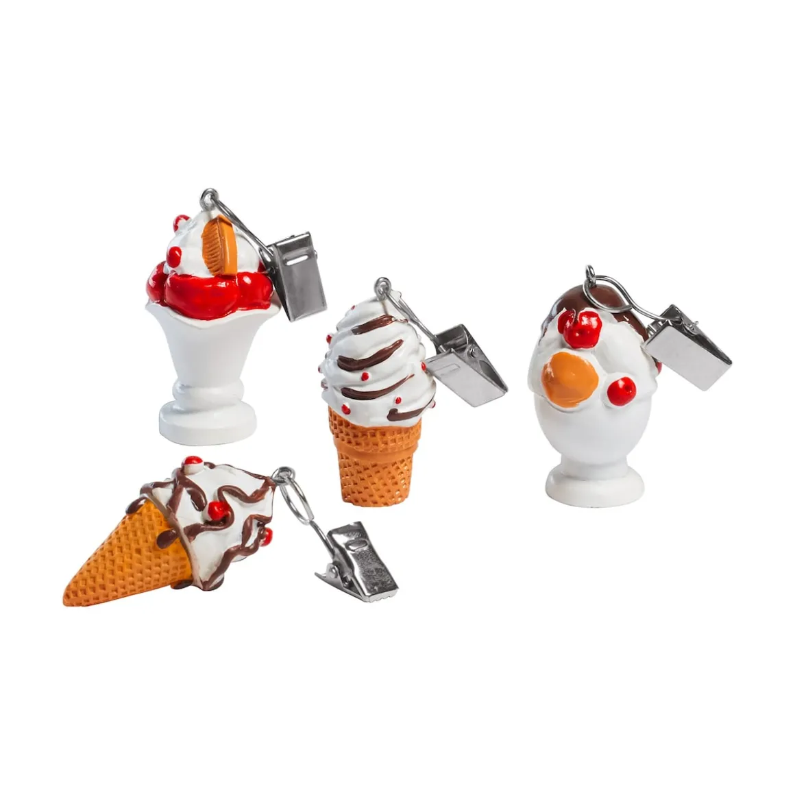 Braust der Wind über den Tisch, bleibt das Tischtuch garantiert an Ort und Stelle, wenn Sie die Enden mit diesen hübschen Gewichten behängen. Sie haben die Form verschiedener Eisbecher und -waffeln.
