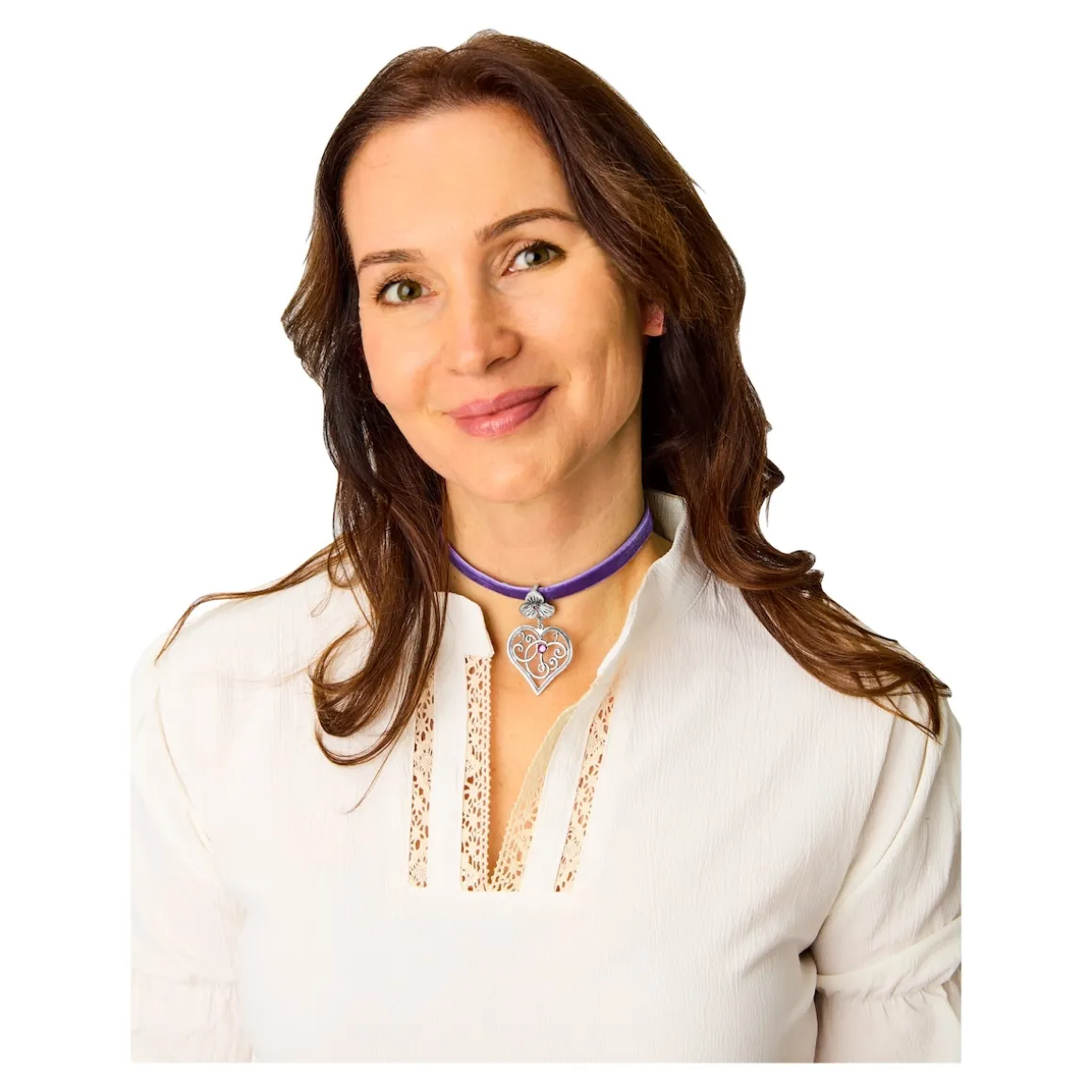 Romantik und Heimatgefühl in einem: Die filigranen Details und funkelnden Akzente machen diese Halskette zum perfekten Begleiter für Ihre Tracht. Mit edlem Samtband.