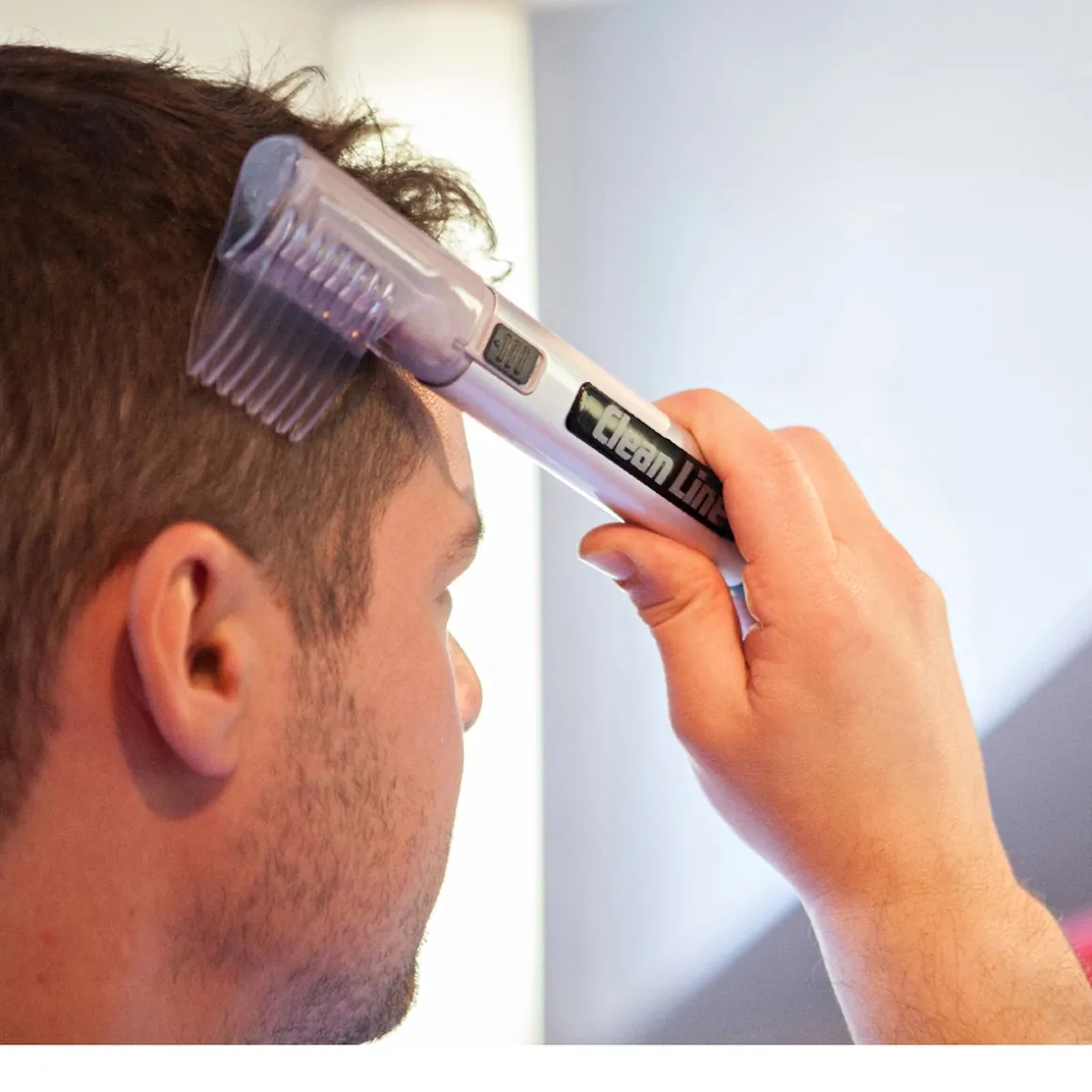 Ohne fremde Hilfe und mit nur einer Hand können Sie Haare kämmen und gleichzeitig dabei kürzen. Einstellbare Längen: 0, 4, 17, 28 mm. Kompakter Griff, sichere Anwendung.