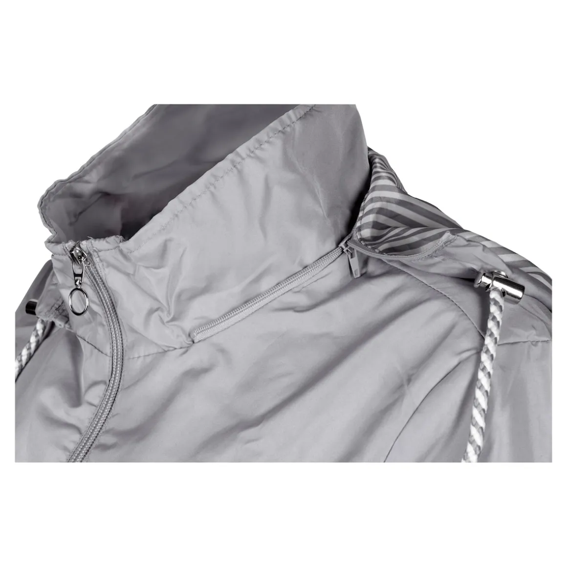 Die Übergangsjacke „Linda“ ist Ihre perfekte Begleitung durch die wechselhaften Frühlingstage. Mit ihrem Stehkragen, der Taillenschnürung, Kapuze sowie dem praktischen Reißverschluss und den zwei seitlichen Eingriffstaschen mit Zierlasche und Öse vereint sie Funktionalität und Stil. Gekonnt hält sie Wind und Wetter ab, während Sie modisch durch die Übergangszeit schreiten.
