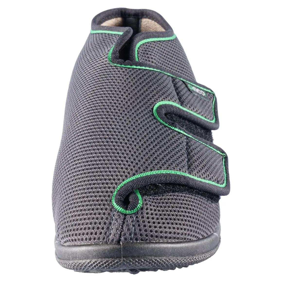 Bei Verbänden, Fehlstellungen oder starken Schwellungen – Weiche Verbandsschuhe geben Ihren Füßen den Raum, den sie brauchen und dennoch guten Halt beim Gehen. Antivirale Beschichtung zur Selbstdesinfektion. Stufenlose Weitenregulierung durch einen besonders breiten Klettverschluss. Schöne Kontrastnaht. Knöchelhoher Schuh mit doppeltem Klettverschluss.