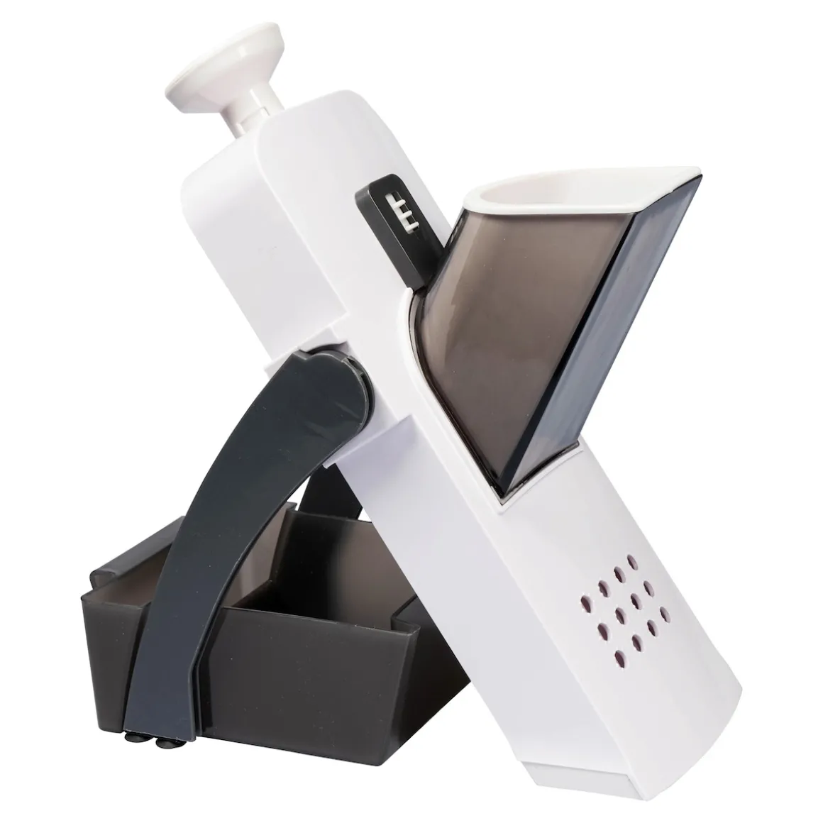 Schneiden und würfeln Sie Obst, Gemüse, Käse oder Wurst schneller und in absoluter Perfektion mit dem Vertikal-Hobel. Auf den gefederten Griff drücken und los geht‘s. Ihre Finger sind dabei geschützt, denn die verstellbaren Klingen sind im Hobel integriert.