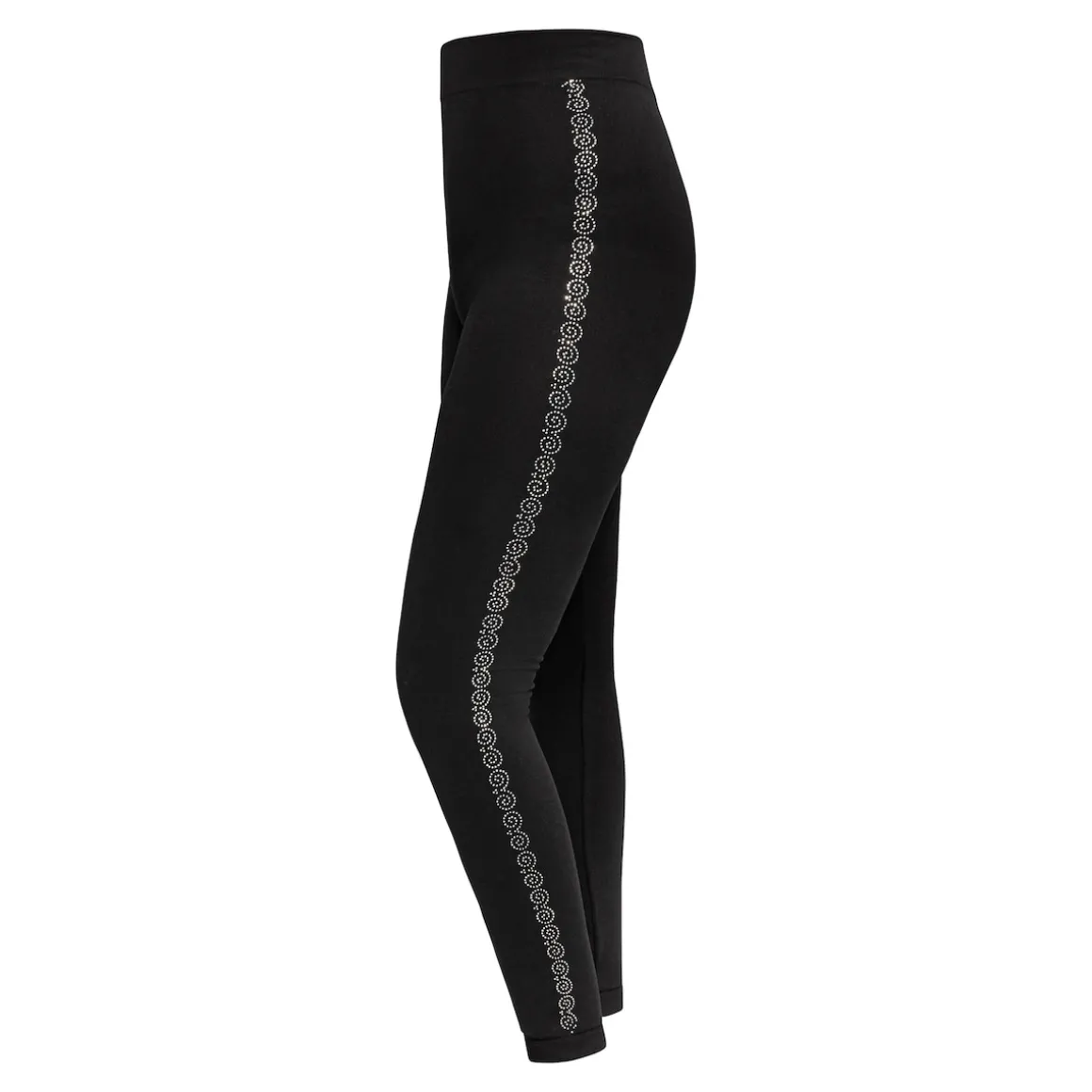 Warm, weich, glanzvoll: Diese Leggings mit kuschelig angerauter Innenseite sitzt perfekt und trägt sich dank hohem Komfortbund super bequem. Funkelnde Glitzersteinchen setzen als seitliche Borte stilvolle Akzente.