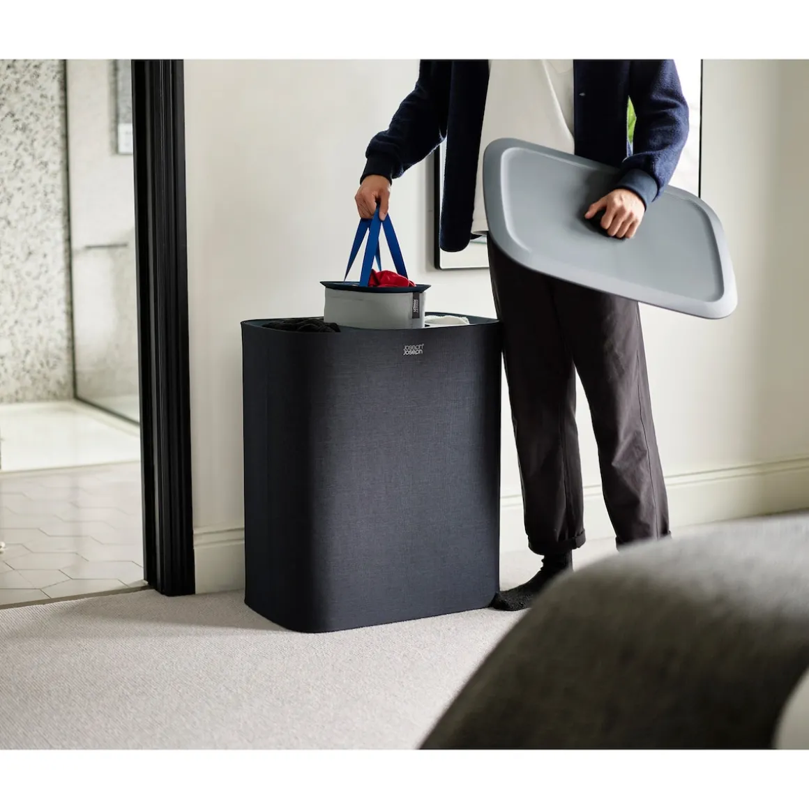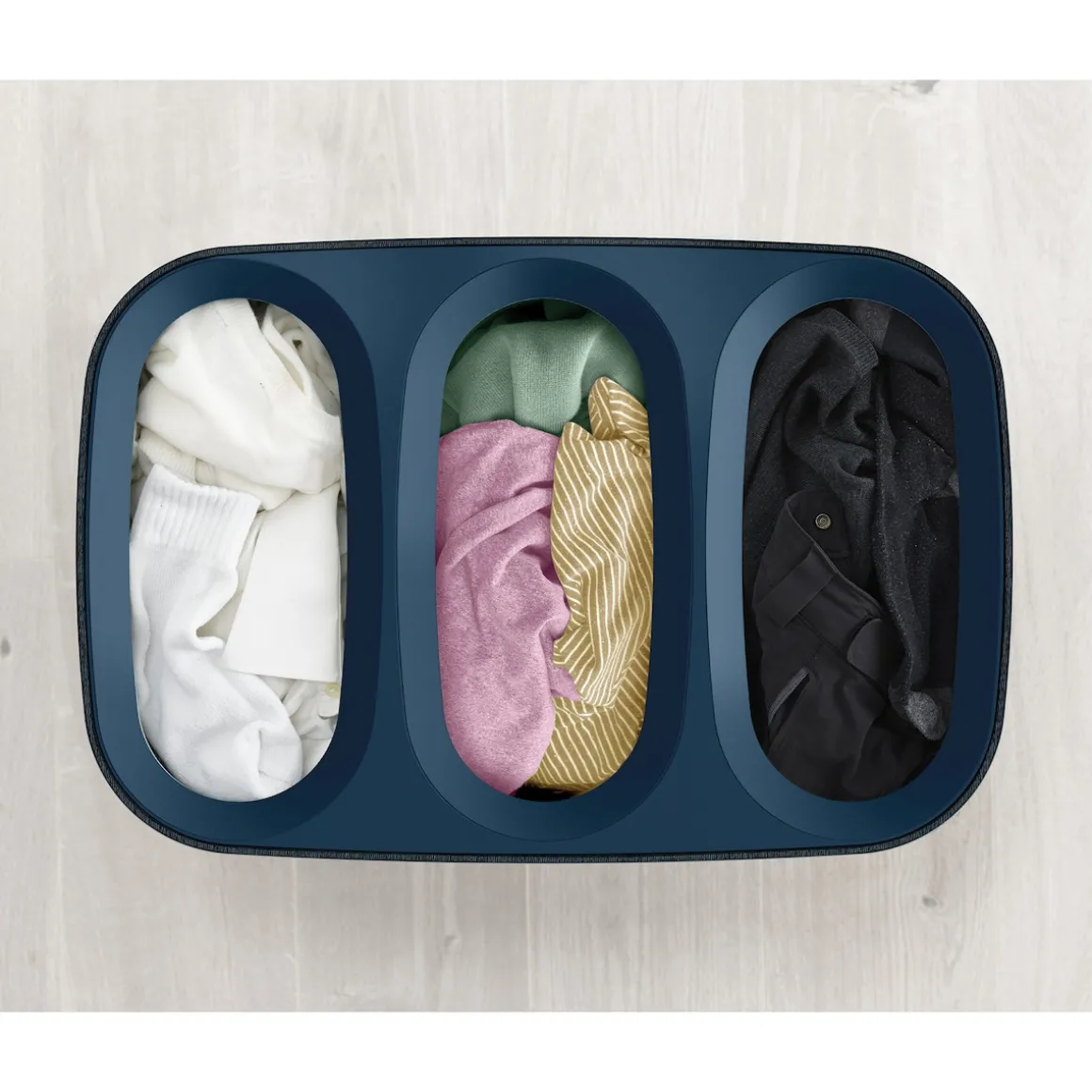 Wäschesammler, Wäschekorb Tota Trio mit Deckel, 3 Fächer, 90 l schwarz