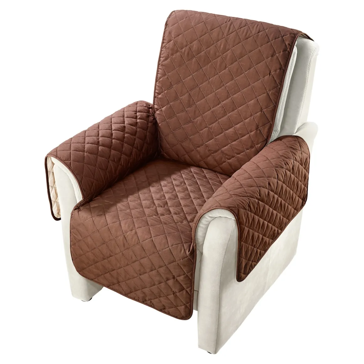 Sie mögen die Abwechslung? Kein Problem: Die Sesselschoner sind von beiden Seiten einsetzbar. Auf der einen Seite besitzt der Bezug eine unifarbene Stepp-Optik, auf der anderen ein mehrfarbiges Muster. Zur Auswahl stehen verschiedene Varianten wie zum Beispiel das Modell Safari, das auf der einen Seite braun und auf der anderen Seite mit verschiedenen Tierprints (Leo, Zebra) versehen ist.
