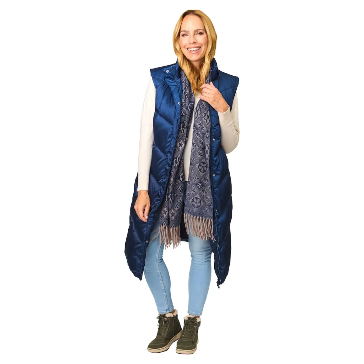 Der warme Steppmantel punktet nicht nur mit seinem angesagten Metallic-Effekt, sondern vor allem mit den per Reißverschluss abnehmbaren Ärmeln: Im Nu verwandeln Sie den Mantel in eine Steppweste, deren Kapuze ebenfalls abnehmbar ist. Ein 2-Wege-Reißverschluss sorgt zudem für extra Tragekomfort. Mit 2 seitlichen Taschen, mit Reißverschluss.