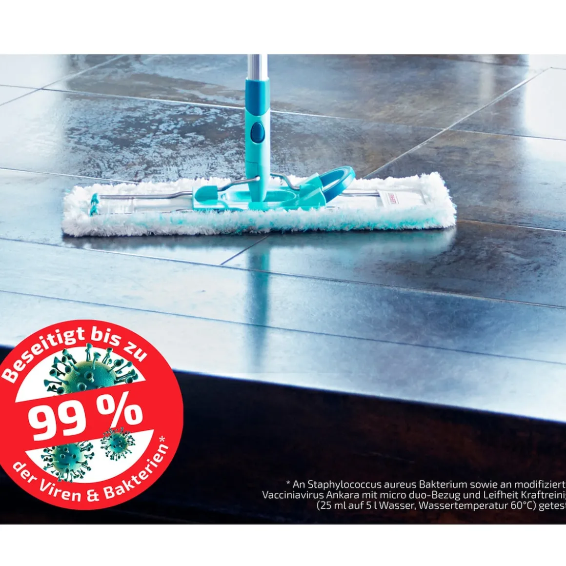 *An modifiziertem Vacciniavirus Ankara mit Leifheit Universalreiniger (5ml auf 500ml bei max Wassertemperatur 60˚C) getestet.