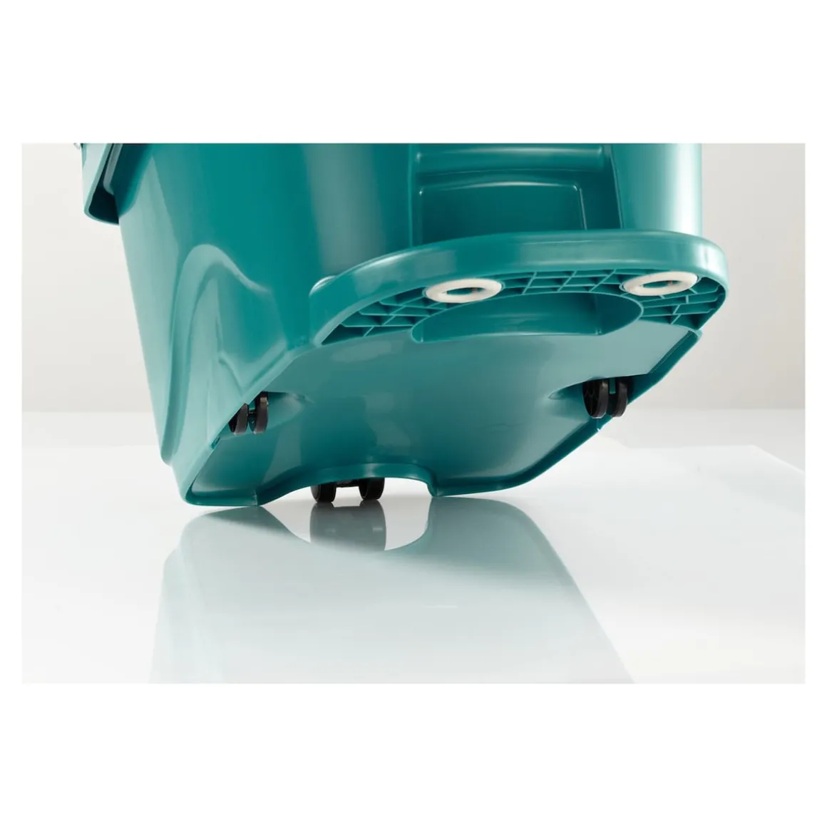 Die Wischtuchpresse gibt es nun auch mit zwei leichtgängigen Rollen direkt auf der Unterseite des Eimers. Wird versendet mit Steck-Stiel.