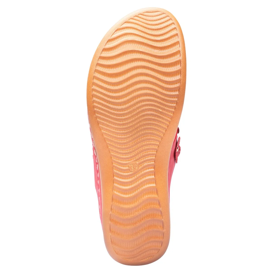 Mit dieser sommerlich-leichten Pantolette gehen Sie leichtfüßig und stilvoll durch die warme Jahreszeit. Das weiche Fußbett mit Noppen sorgt beim Gehen für eine sanfte Massage – einfach herrlich. Mit glänzenden Metall-Applikationen, bequemer Laufsohle und einem Keilabsatz von 4,5 cm.