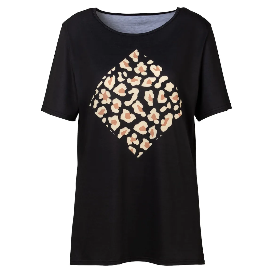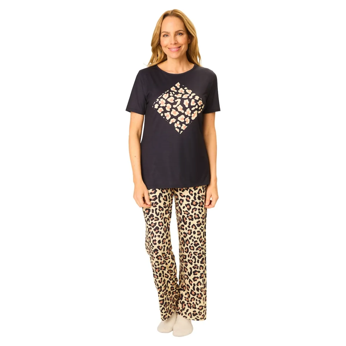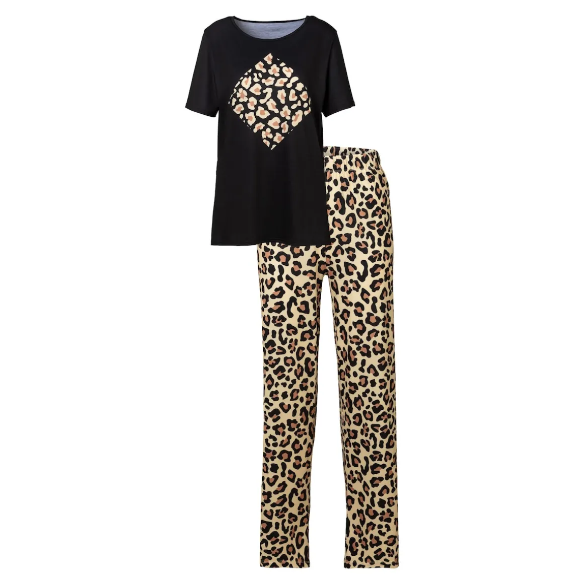 Für Kuschelmomente zu Hause: Dieser bequeme Zweiteiler mit Leo-Print könnte darin die Hauptrolle spielen. Das Kurzarm-Shirt wird perfekt mit der dazu passenden, gerade geschnittenen Hose mit Gummibund ergänzt.